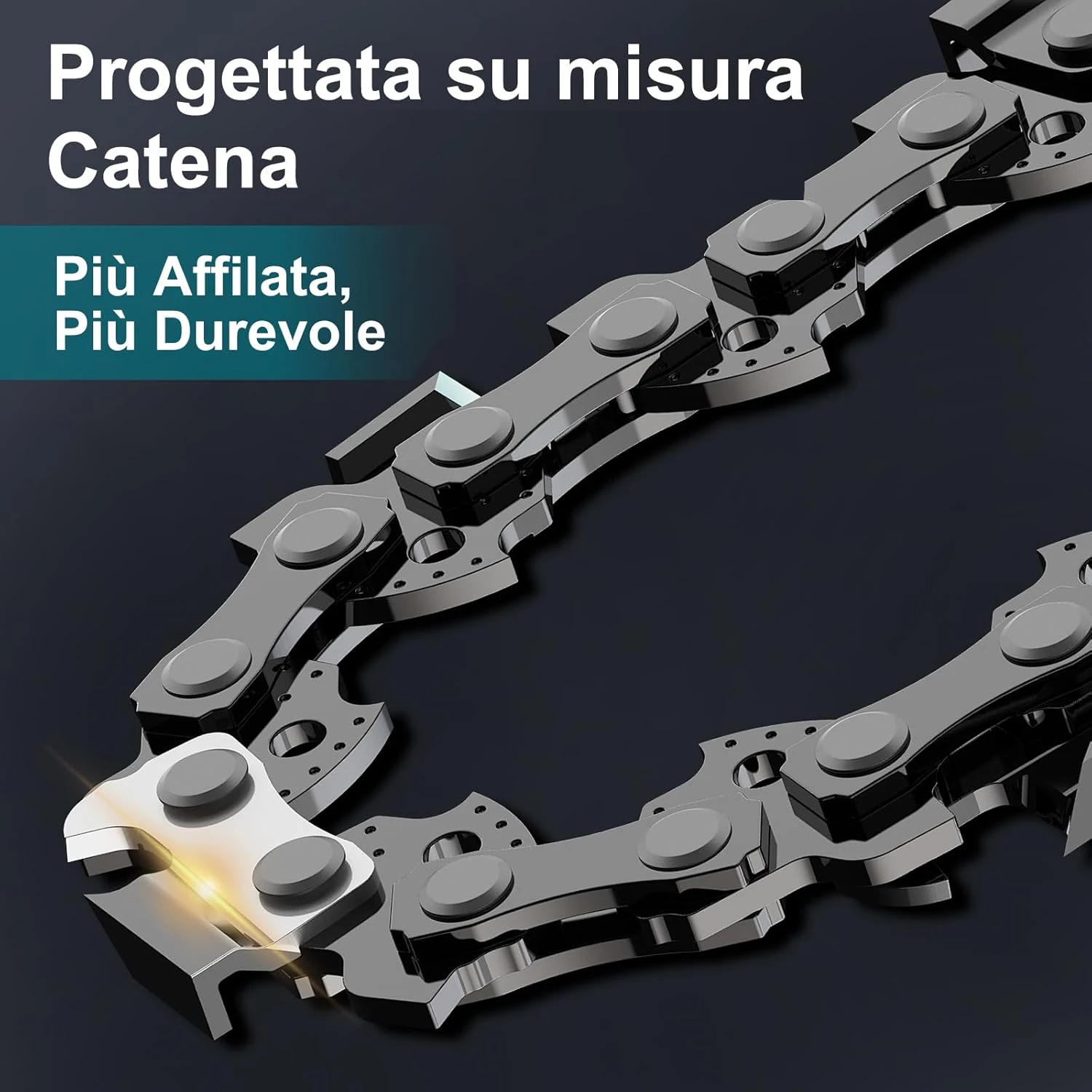 Il motore ad alta potenza permette di affrontare tronchi oltre i 30 cm senza tanto sforzo. La catena temprata assicura tagli netti e regolari, anche su legni duri.