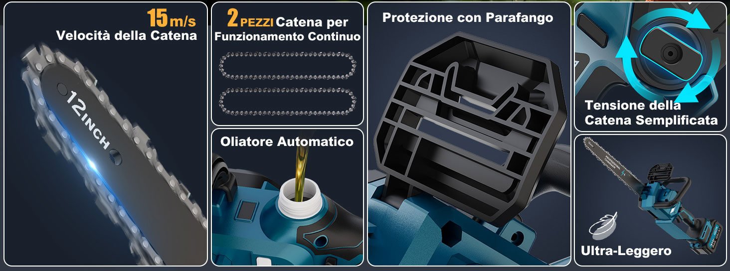 Non lasciarti ingannare dal suo peso piuma: con appena 1,7 kg, questa motosega affronta lavori impegnativi senza sforzo. Funziona perfettamente anche in condizioni estreme ed è ideale da tenere in garage, officina o nel bagagliaio per ogni evenienza.